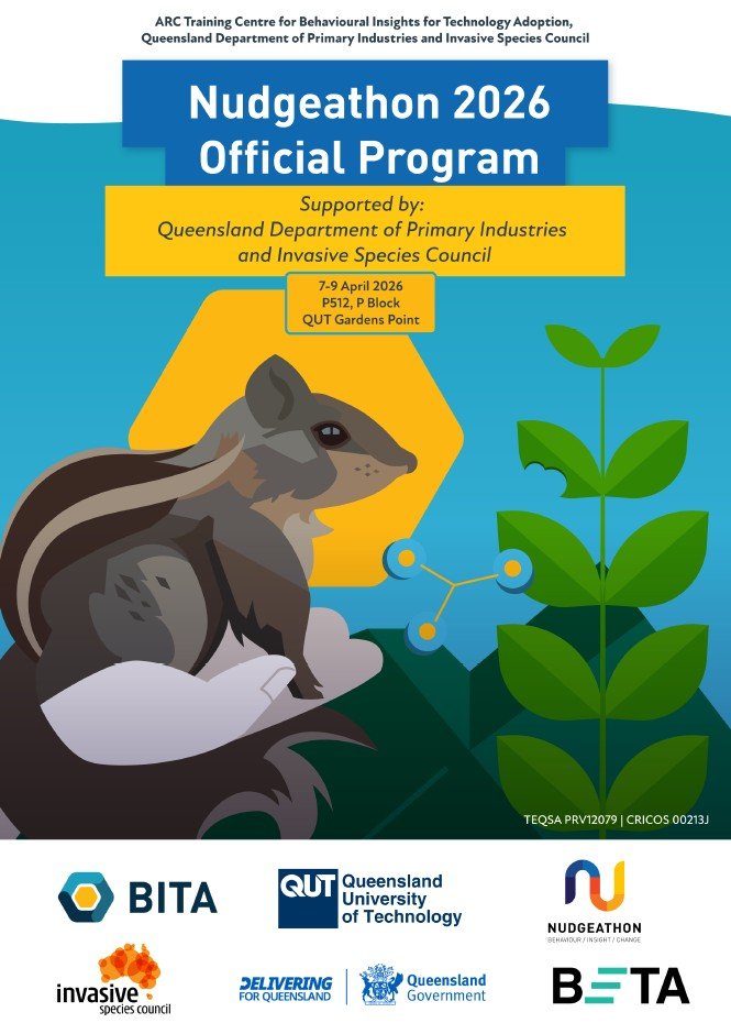 Last year’s Nudgeathon (2024) challenged participants to tackle two biosecurity. Teams worked on Challenge One: “The Value of Preparedness”, developing behavioural interventions to encourage farmers, growers, and agribusinesses to adopt stronger biosecurity emergency planning practices. Challenge Two: “The Citizen Science of Biosecurity” asked participants to design innovative ways to engage everyday Australians in identifying and reporting pest and disease risks, thereby improving early detection and mapping.